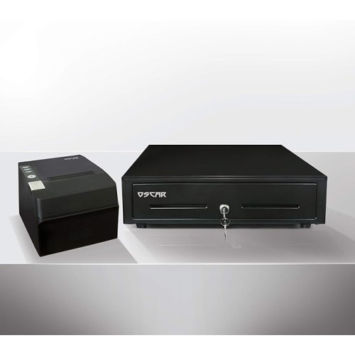 نظام نقطة البيع OSCAR كور i5 / 4 جيجابايت رام / 128 جيجابايت SSD | جهاز نقاط البيع بشاشة لمس 15 بوصة + طابعة إيصالات 80 ملم + درج تسجيل النقدية 5 عملات رقمية 8 عملات معدنية + ماسح باركود 1D